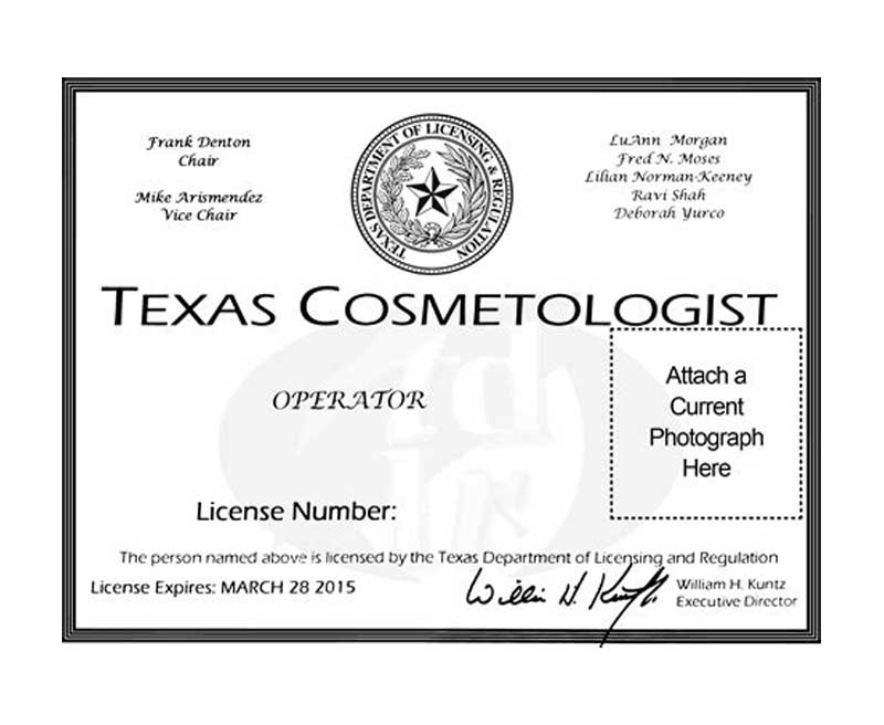 Texas Cosmetology License.